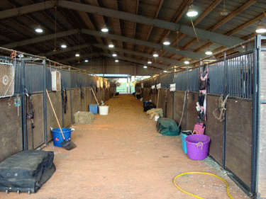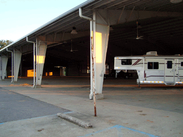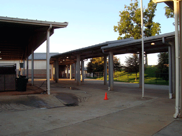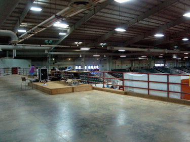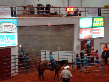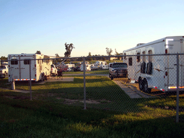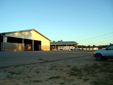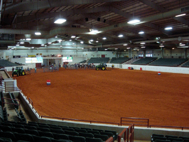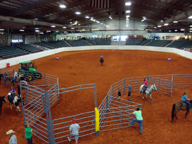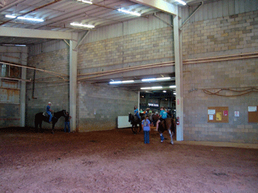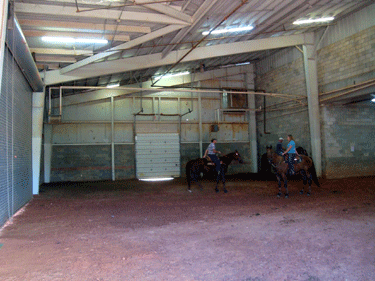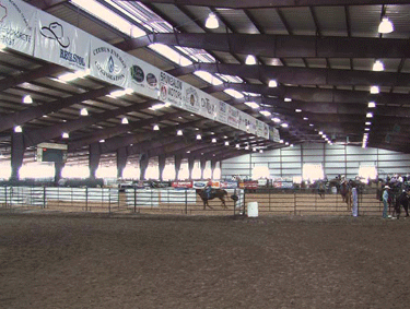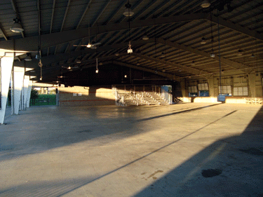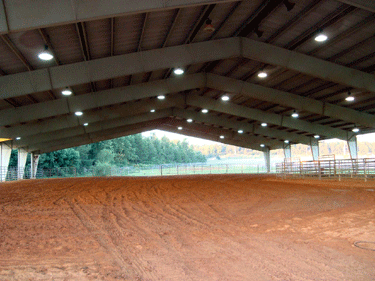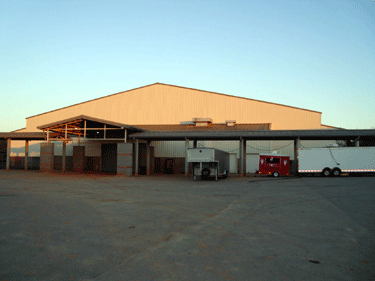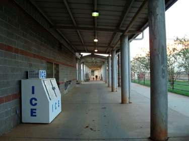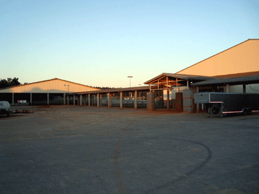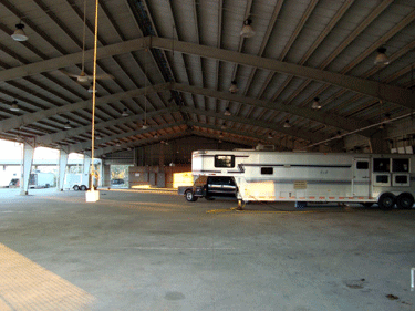Building E is a 19,334 square foot building with 15,000 square feet (150 x 100) of open floor space. The concrete bottomed building is also equipped with ceiling fans, two restrooms with shower facilities, paging system, indoor wash racks with 24 spaces and covered walkways to other buildings. E Barn can accommodate 78 stalls with electrical outlets at each one, has room for 158 5 x 5 hot-dipped metal pens and has additional electrical outlets.