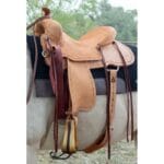 This hardseat saddle is all roughout for a rancher look with a single skirt for less weight. 2727 Comal has in-skirt rigging for free fender swing. Perfect to rope in and strong to handle any other tasks. Six sets of strings to tie your gear. Matching rear cinch set included. It’s hand-tooled and handcrafted in Texas. It will provide you many years in a well-made saddle at a great price. Keep your saddle secured with the matching flank cinch that is included