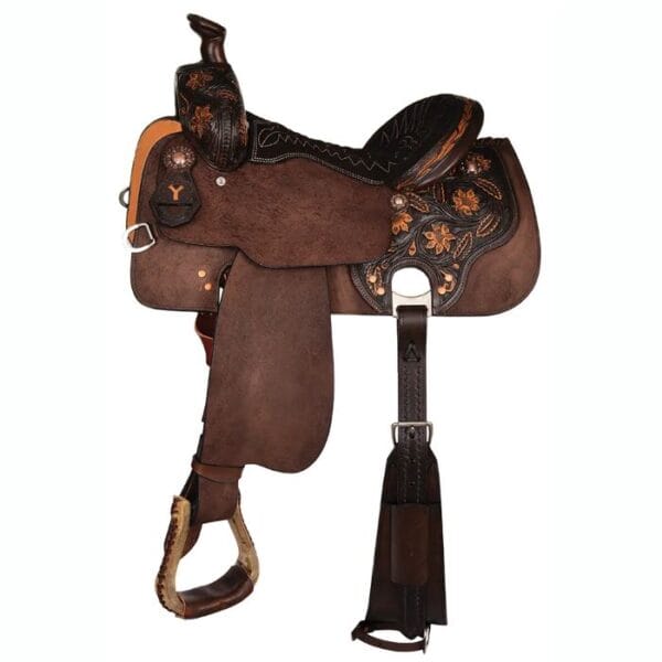 Weight 35.00 Pounds Cantle Height 3.50 inches Horn 3″ Neck x 3″ Cap Swell 13 inches Seat Color Chocolate Suede Seat Size 12″, 12 1/2″, 13″, 13 1/2″, 14″, 14 1/2″, 15″, 15 1/2″, 16″ Color Vintage with Chocolate Tooling Degree 1/4 Tooling Tooling Type Arizona Rigging 7/8 Double In-skirt Tree Type BGC All Around Tree Fit Regular, Wide Skirt Drop 14.50 inches Skirt Length 25.00 inches
