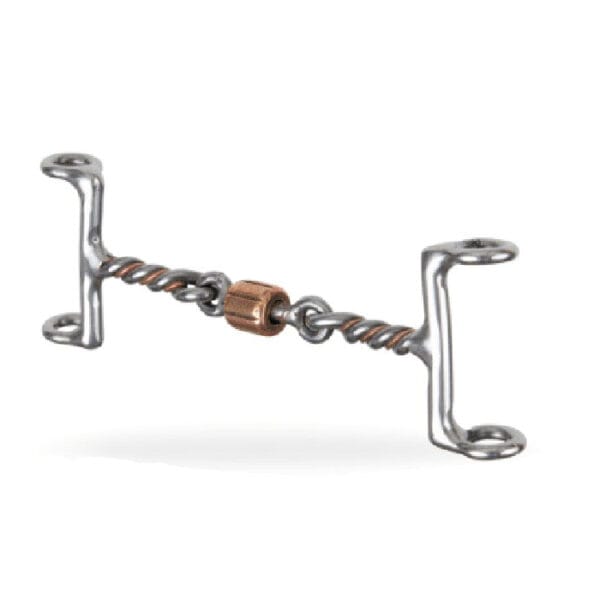 Excellent draw gag that has more mouthpiece action than the half circle gag. This mouthpiece packs well. It is small enough to have some “bite” for control but can be ridden for competition. The copper and sweet iron blend give the horse a sour apple flavor, keeping their mouth soft and supple. The 3-piece mouth lays naturally over the horse’s tongue preventing the break in the middle of their mouth.