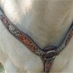 The Dark Flash Arizona Flower tack is perfect for any occasion, with distressed leather that matches almost any saddle and bright silver spot accents on a dark textured underlay. This breast collar has a contour tapered shape that won’t restrict shoulder movement, although a wither strap can be added if the breast collar needs lift.