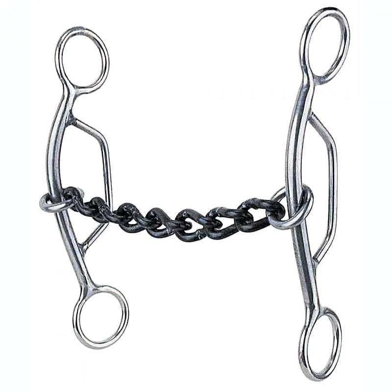 A low leverage gag excellent for horses with a lot of natural rate. The chain is one of the less severe mouthpieces. Works well on the corners of the lips and conforms well in the mouth for a slight amount of tongue pressure. Most problem horses will pack this mouthpiece extremely well.
