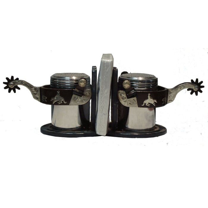 Add a little “Western Look” with this Spur Salt & Pepper shaker. The Cutter spurs with the napkin holder will add the unique look you are looking for. It will also make a great gift for your friends.