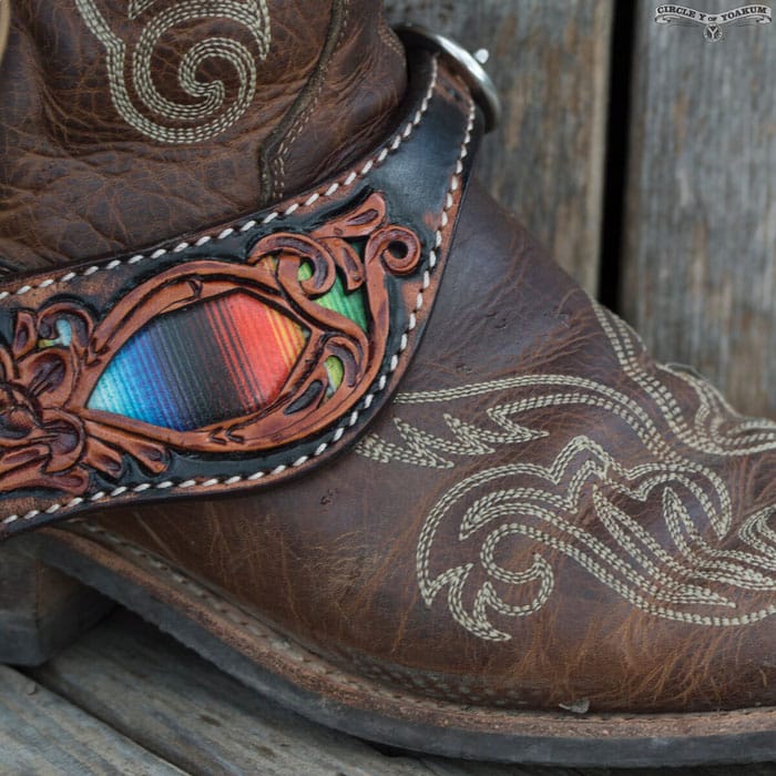 Brilliant serape micro-fabric stuns in rich multi-toned leather. Fits most ladies Western boots.