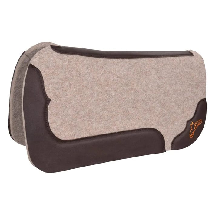 Sharon Camarillo’s Sure Fit Full Pad looks great under any saddle. This pad is made of wool felt, contoured to mold to the shape of the horse’s back, maximizing shock absorption and enhancing saddle fit and comfort. The cut back design located at the shoulder and hip on each Sure Fit pad provides freedom of movement necessary for optimizing efficient performances and longer strides for faster times. The contoured back combined with the wicking properties of the wool felt is guaranteed to provide optimal comfort on any horse.