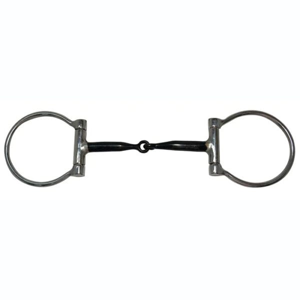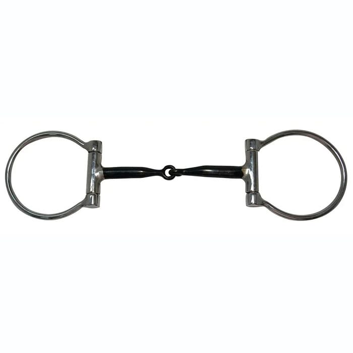 This is a great everyday use bit because of the sweet iron and copper inlay mouth and stainless steel cheeks. The mouthpiece is made of sweet iron which will naturally rust into a light patina. The rust creates a sweet taste for the horse and makes the bit more acceptable and increases salivation for a supple mouth. Copper will make the horse salivate to create a soft mouth. The fixed dees apply pressure to the horse’s lip on the opposite side of the face from the rein you pull for better flexion so it’s ideal to ride with two hands and direct rein. It’s great for starting horses, training, or maintaining steady contact. Copper is a soft metal, check for excessive wear before each ride.